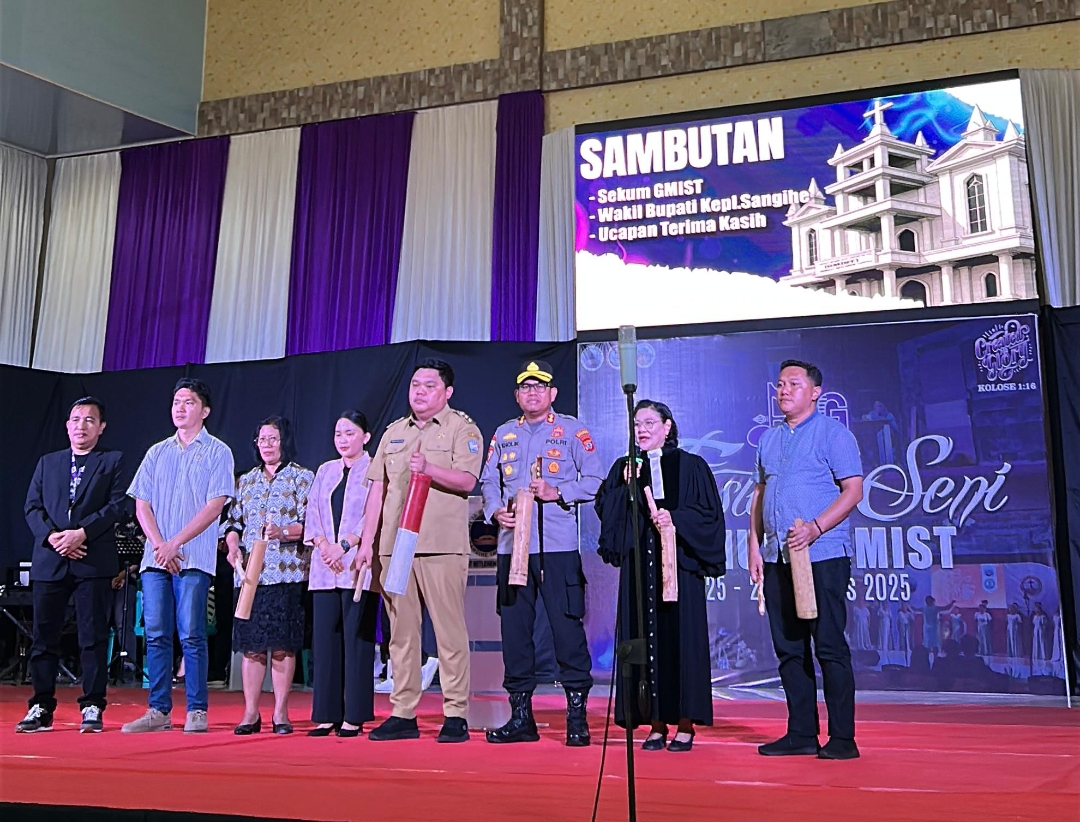 IndoBRITA,Tahuna- Wakil Bupati Kepulauan Sangihe, Tendris Bulahari, menghadiri kegiatan Pembukaan Festival Seni Pemuda Gmist (FSPG) tahun 2025, yang dilaksanakan di Gmist Betlehem Tahuna, Senin(25/8/2025).