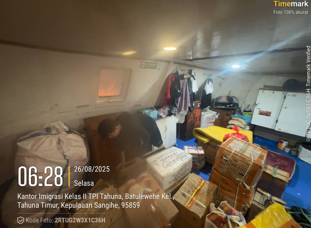 IndoBRITA,Tahuna- Selasa(26/8/2025), Polres Kepulauan Sangihe melaksanakan pemeriksaan rutin di Pelabuhan Laut Tahuna. Dipimpin oleh personil Unit Opsnal Narkoba, Briptu Hadad Ezha Gobel, Satuan Reserse Narkoba memeriksa dua kapal penumpang yang tengah berlabuh di Pelabuhan Tahuna, yakni KM Mercy Teratai dan KM Barcelona III A.