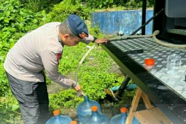 Selain kerja bakti, Satbrimob Polda Sulut juga menyiapkan dapur lapangan dan penyediaan air bersih siap minum bagi warga di pengungsian