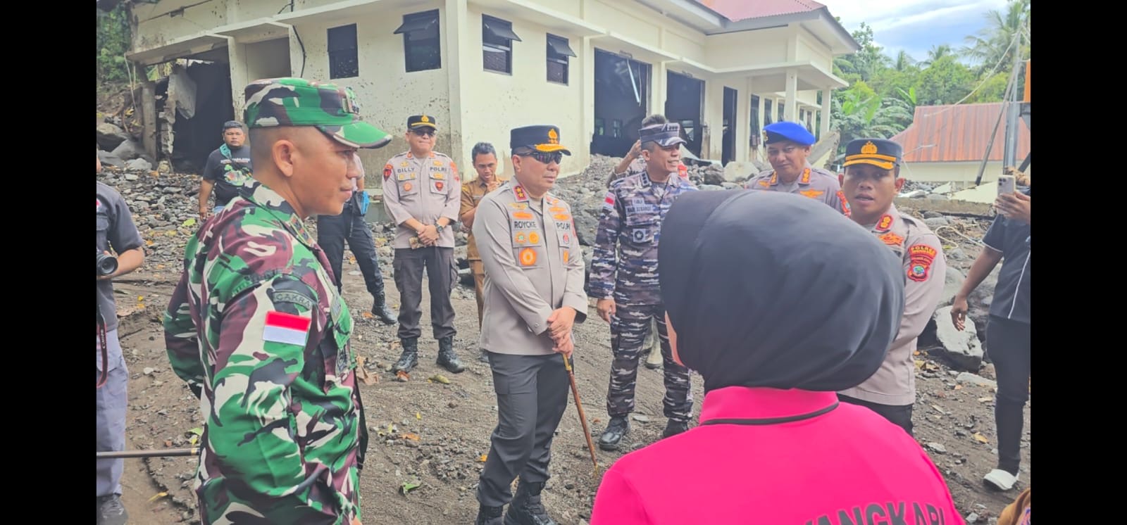 Kunjungan tersebut disambut oleh Bupati Kepulauan Sitaro Chyntia Kalangit, Wakil Bupati, Kapolres Sitaro, serta jajaran Forum Komunikasi Pimpinan Daerah (Forkopimda). Sinergi antara pemerintah daerah dan aparat kepolisian terlihat solid dalam upaya percepatan pemulihan kondisi wilayah terdampak.